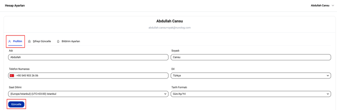 Değişiklikleri yaptıktan sonra "Güncelle" butonuna tıklayarak bilgilerinizi güncelleyebilirsiniz.