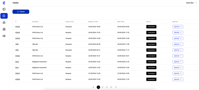 Teklifler Listesi Görüntüleleme, Filtreleme, Teklif Detaylarına Erişim