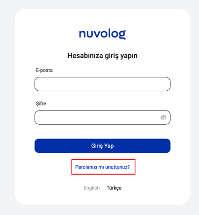 Şifrenizi hatırlamıyorsanız göndericiyseniz https://shipper.nuvolog.com/, taşıyıcıysanız https://carrier.nuvolog.com/ web sayfasından giriş sayfasına geliniz. Sonrasında "Parolanızı mı unuttunuz?" linkine tıklayınız