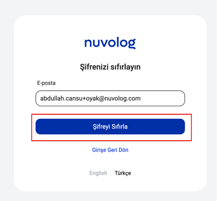 Açılan Şifrenizi Sıfırlayınız sayfasında sistemde tanımlı olan E-posta adresinizi yazarak "Şifreyi Sıfırla" butonuna tıklayınız.
