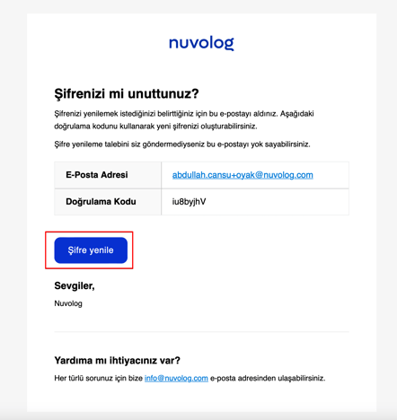 Bu işlemi yaptıktan sonra girdiğiniz e-posta adresi sistemde tanımlıysa e-posta adresinizi aşağıdaki gibi otomatik bir e-posta gönderilecektir.